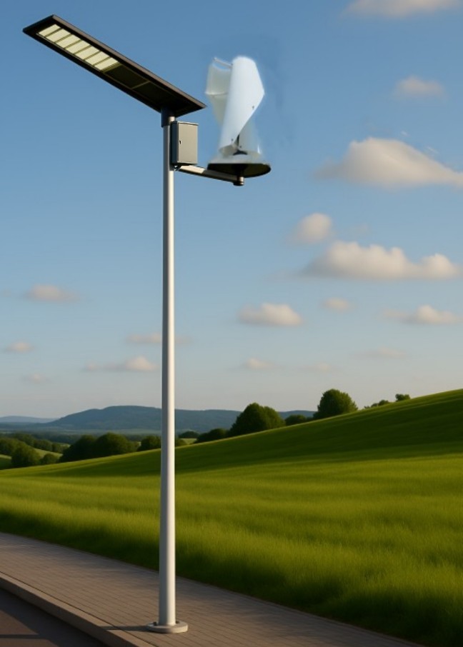 Hybrid lighting poles combine solar and wind energy to provide greater lighting efficiency and energy storage